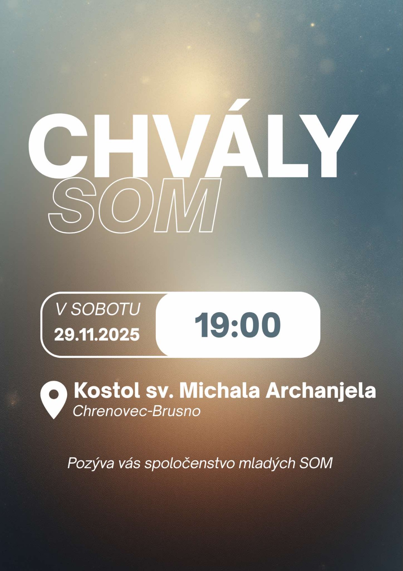 V Sobotu o 19.00 pozývame na modlitbu Chvál. Po modlitbe stretnutie spoločenstva SOM
