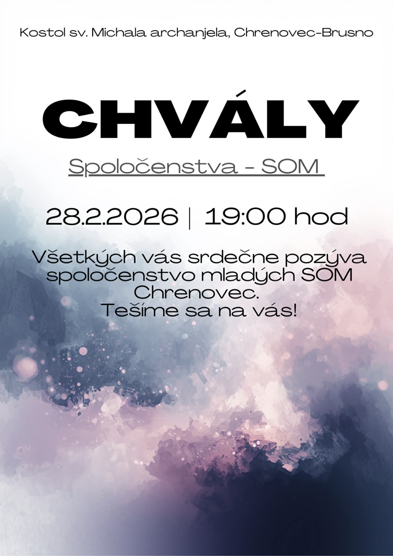 Naše spoločenstvo mladých SOM vás pozýva na dramatizovanú Krížovú cestu, ktorá sa uskutočni na 4. pôstnu nedeľa 15. marca. Začiatok 16:00 pred farským kostolom. V prípade nepriaznivého počasia bude v kostole